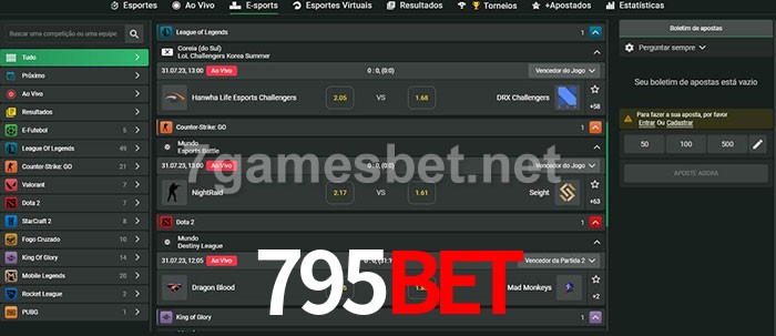 O 795bet oferece uma grande seleção de opções de apostas em e-sports com probabilidades competitivas